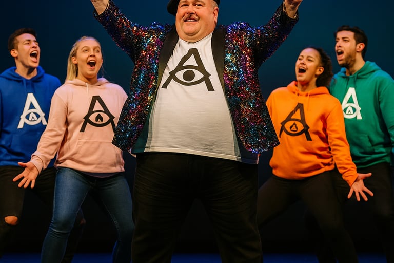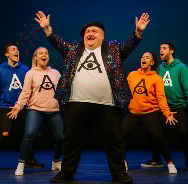 Monsieur Algorithm - To end the show with something lighter, we meet a new generation algorithm, now A.I. This comical Frenchman wanders onto the stage as the song starts, joined by fellow A.I. models in hoodies. Essentially all the cast join on stage in this manner through the song. Both to demonstrate the growth of this new technology, and to get them all on stage for curtain call. The lyrics are light-hearted and arrogant, as whilst society assumes it might have weakened to the dangers of digital technologies, A.I. knows it has the inevitable upper hand still.