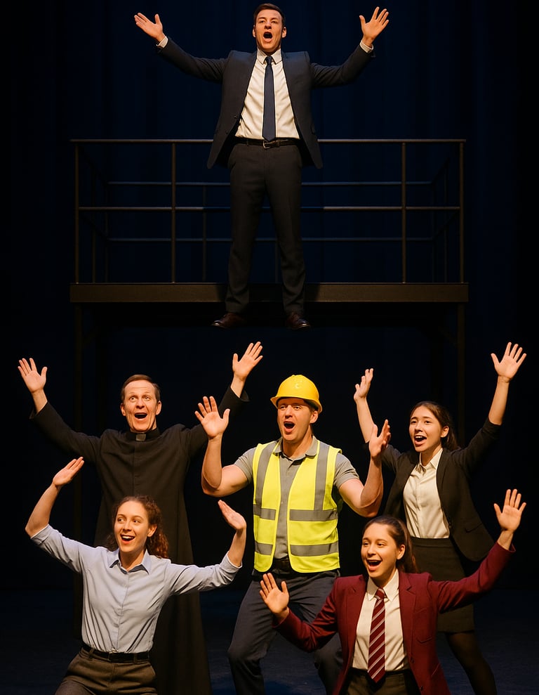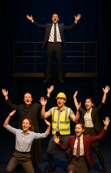 All for ONE (and NONE for all) - Before this song begins, Jonas directly addresses the audience. "Thank you my ungrateful servants for voting in the interval. What was the outcome, who knows, frankly, who cares? But you have at least swayed which song shall serve as my accension tune". This number sees Jonas back on stage again. It is his victory song, having successfully weaponised his populist agenda via social media, and been elected to power. The lyrics speak to the truth, of an inward-looking, each man for himself, agenda. The crowd of examples from across society that have voted him in are naturally jubilant.